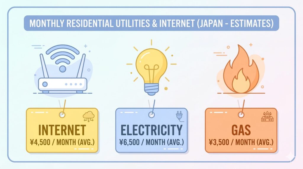 月額コストの総額(光回線+電気+ガス) – 一人暮らしなら月1万円以内が目安